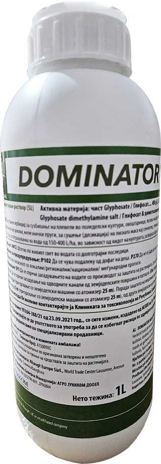 Примена: Се применува во стрништа, необработливи површини, канали, ровови, железнички пруги, пасишта, пред поѓумување, луцерка по откос против свиларка Cuscuta sp., винова лоза постари насади од 3 години, овошки, житарици 2 недели пред жетва, пченка сончоглед, репа, соја за десикација.