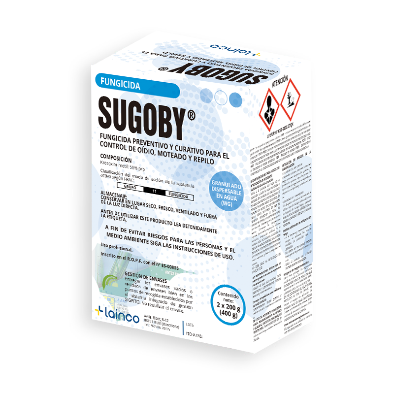 Карактеристики: Нов фунгицид од групата на стробулурини. Се користи за контрола на краставост, пепелница, гниење и дамкавост кај јаболчесто овошје, коскесто овошје и винова лоза. SUGOBY има трасламинарно дејство, се шири во најголем дел преку листовите во форма на гас. Има превентивно, куративно и ерадикативно дејство, како и пролонгирано продолжено дејство. Исклучиво се потенцира и препорачува превентивната примена. Многу добро делува на сите температури. Не предизвикува мрежавост на плодовите.